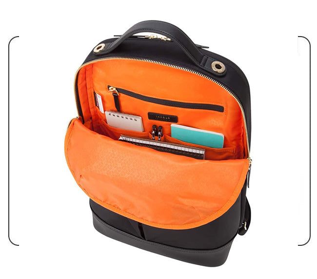Mit drei praktischen Reißverschlusstaschen vorne für kleine Dinge, die Sie jederzeit brauchen. Die Hauptfächer bieten Platz für einen schlanken Laptop oder ein Tablet, Kleidung und Accessoires. Außerdem verfügt er über eine versteckte Rückwandtasche zur sicheren Aufbewahrung wichtiger und privater Gegenstände.