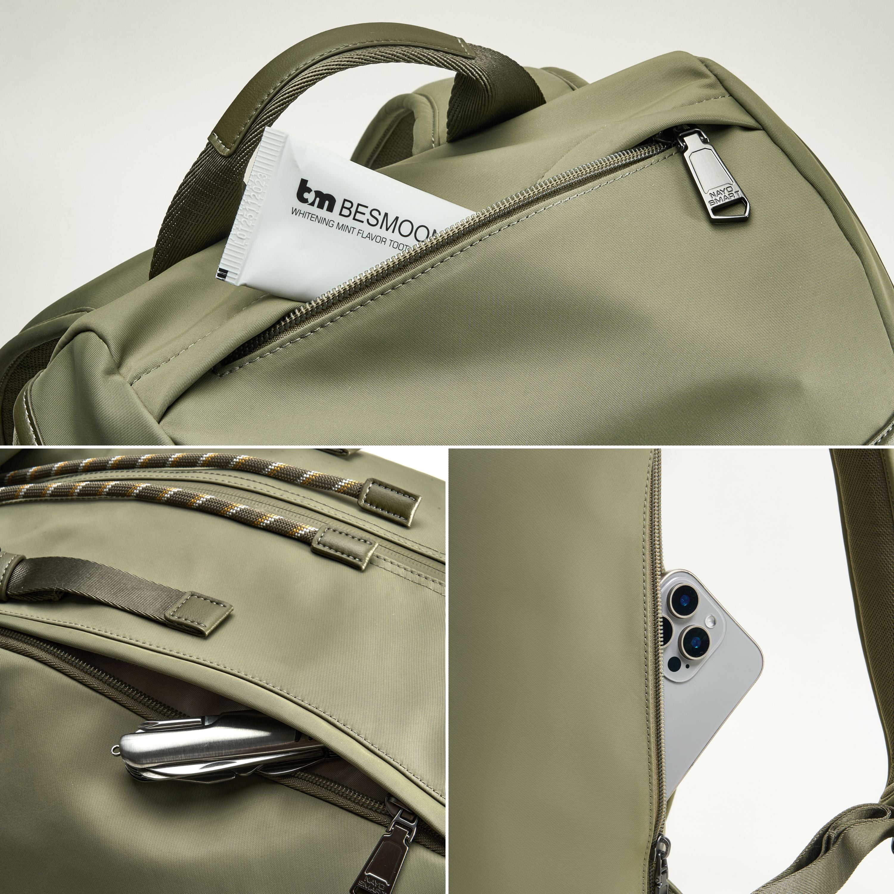 Designed with a V-shaped wide-opening zipper, featuring a 16-inch laptop sleeve, two quick-access pockets for cables and mouse, and two hidden zipper pockets for valuables.
