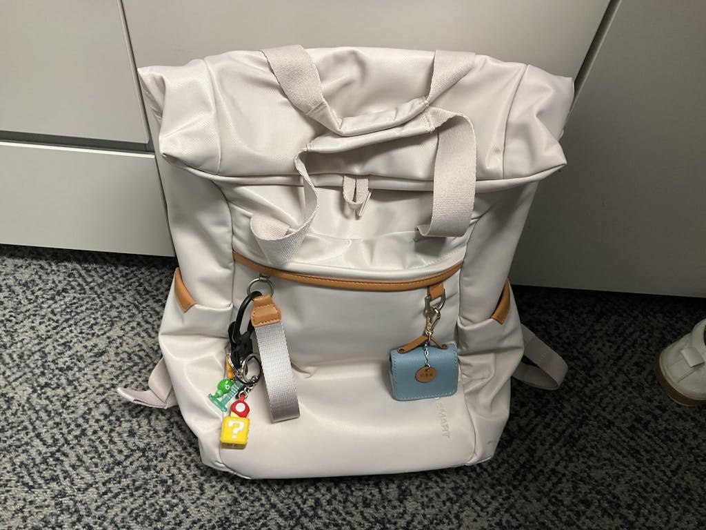 The exterior is made from water and stain-resistant 200D nylon mini-twill for easy cleaning, while the interior features 210T gray PU dots, offering a delicate, durable, lightweight, and eco-friendly design for comfort.